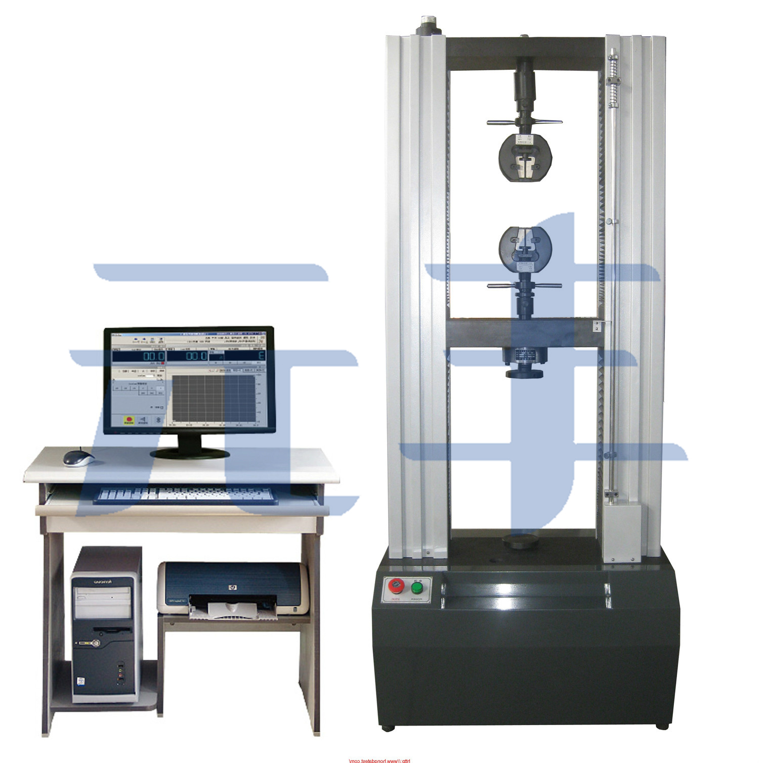 電子萬能試驗機的計算機系統通過控制器,經調速系統控制伺服電機轉動,經減速系統減速后通過精密絲杠副帶動移動橫梁上升、下降,完成聚氨酯保溫管,噴涂纏繞保溫管的高密度聚乙烯外套與聚氨酯泡沫試樣的拉伸、壓縮、彎曲、剪切等多種力學性能試驗。