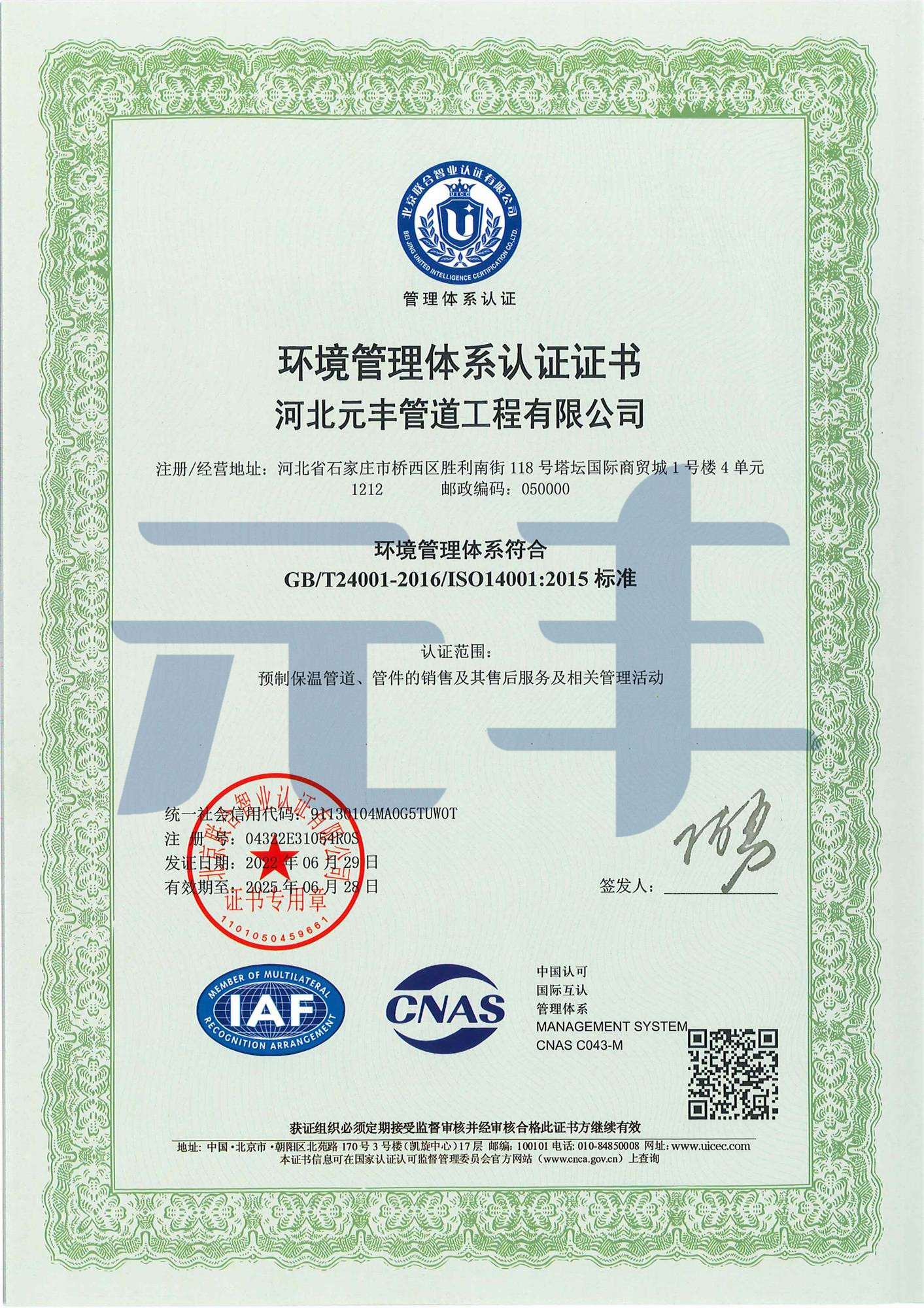 環境管理體系證書