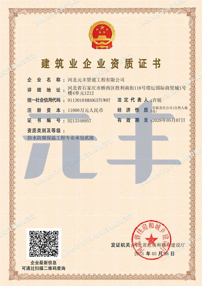 防水防腐保溫工程專業承包貳級